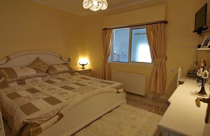 three double bedrooms one en suite bathroom and one family bathroom internal stair lead to the first floor where there is a bedroom with bathroom and private balcony terrace externally the gardens have flat landscape there is a large pool terrace with barbecue area kitchen dining terrace with second bar and barbecue area off-road parking and covered parking and an area of garden with fruit trees