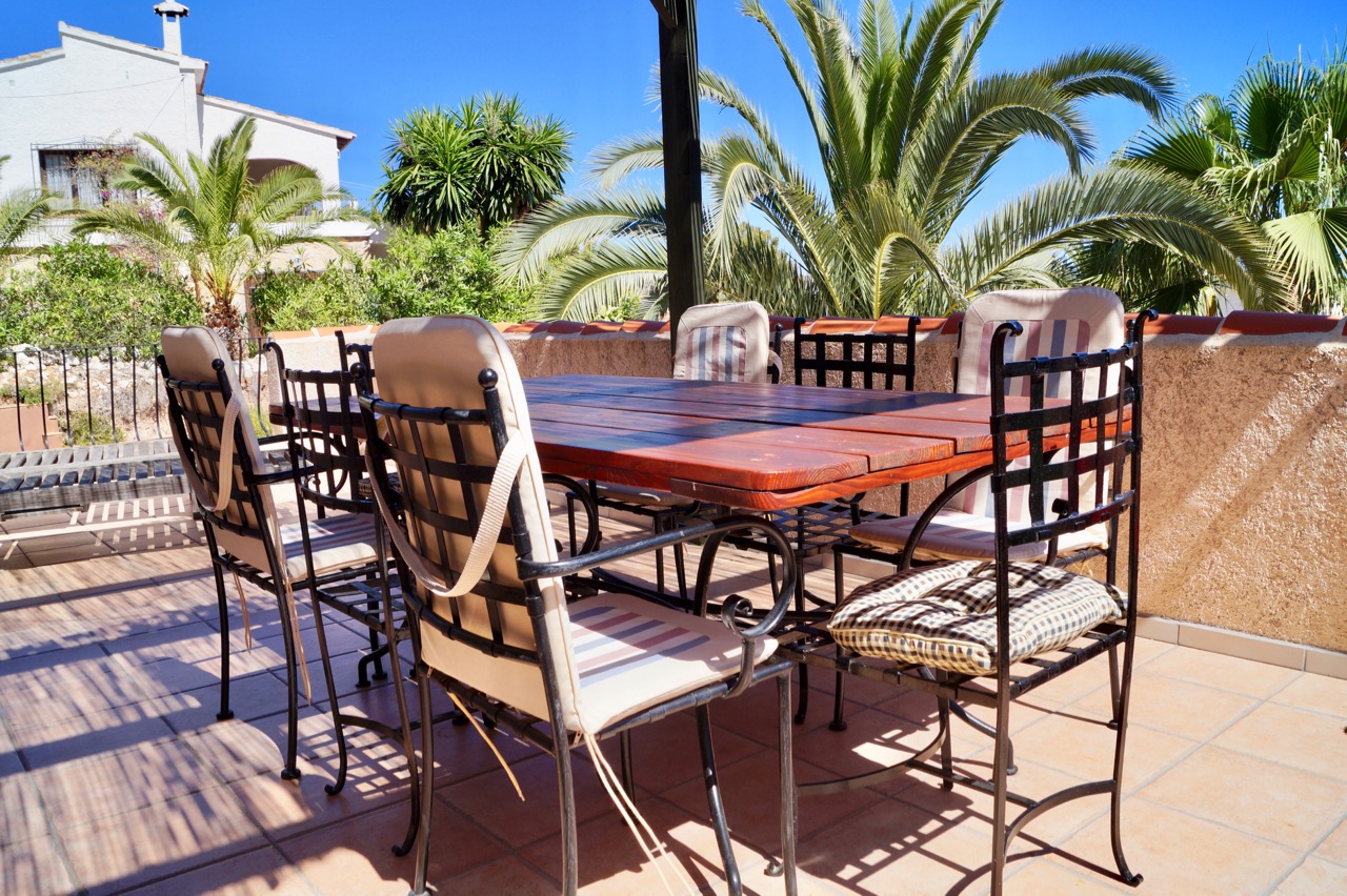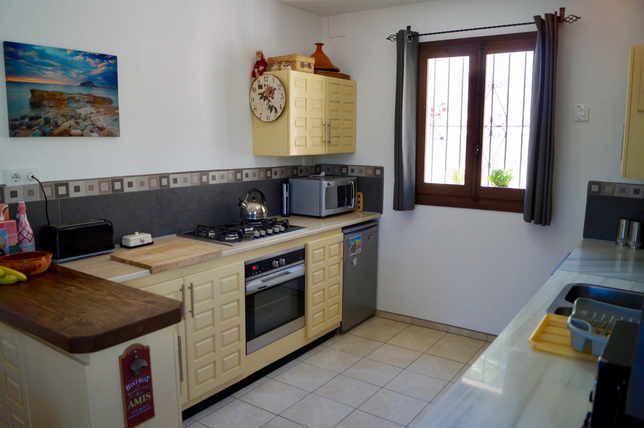 Renovated villa with some Sea views in Benimeit. A gated entrance to an extended driveway with ample off-road parking leads you down without any steps to the front door into the villa.
