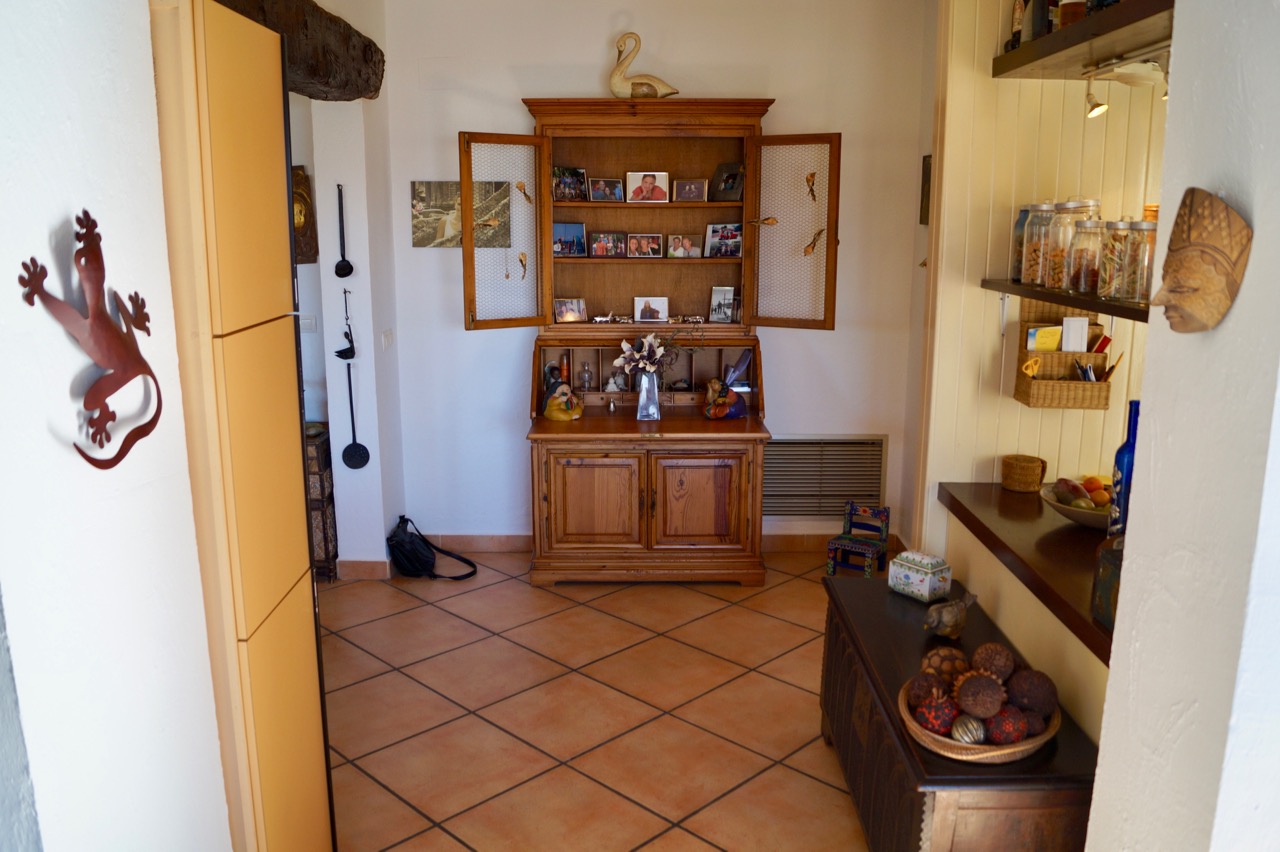 On the swimming pool level is a room which can be used as a dressing room or as summer kitchen and adjacent a shower room with toilet.