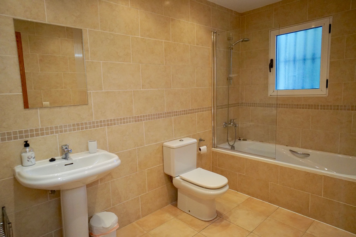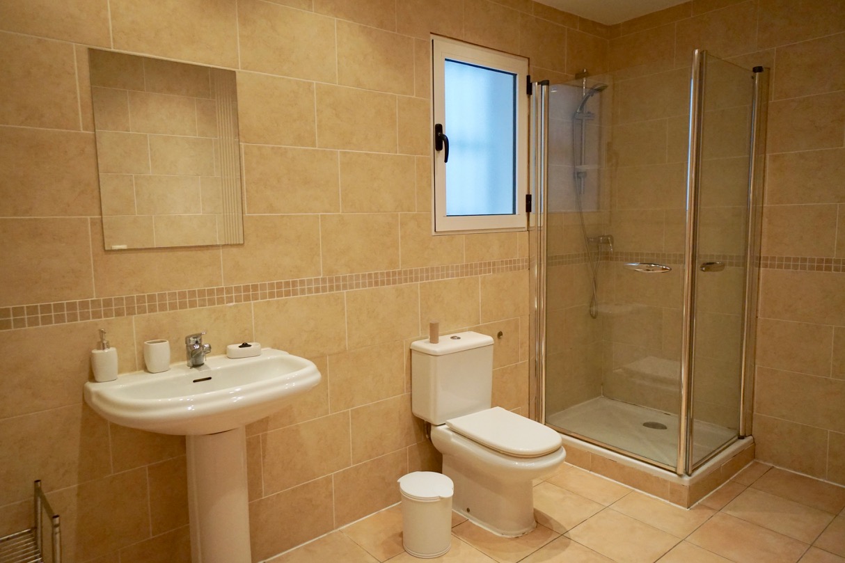 From a spacious parking area a few steps lead down to the main entrance of the property with 1 very large bedroom/en suite, 2 double bedrooms with fitted wardrobes and 2 bathrooms, one of them being en suite.