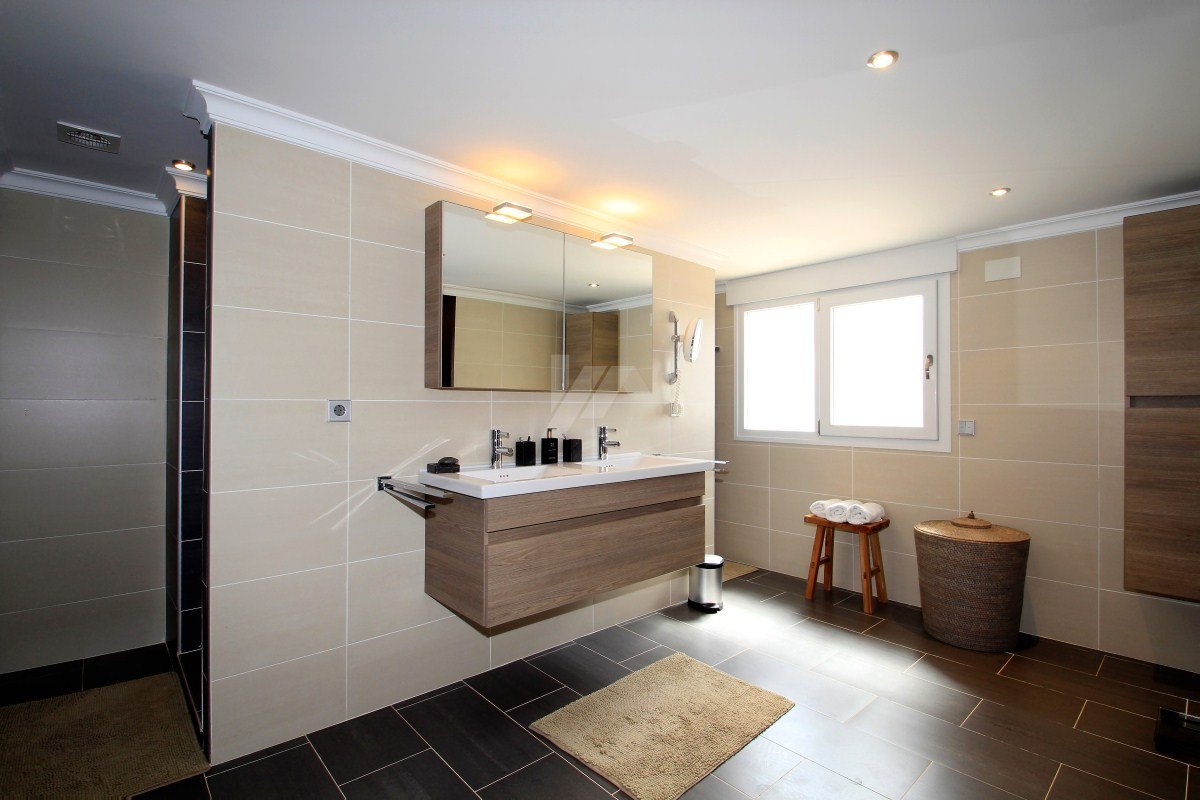 Access to the property can be made via the sliding electric gate that opens to a large driveway that leads up to the garage and later to the main entrance of the villa. There is a second sliding gate opening to an ample parking area ideal for guests. Entering the front door we are welcomed by an ample entrance hall followed by the large lounge/dining area with open style fully fitted kitchen. On this level we also find a double bedroom currently used as an office and a shower room. The internal stairs lead to the lower level where we find two double bedrooms sharing a family size bathroom and the master bedroom with en suite bathroom and dressing room. On this level we also find the utility room with washing machine and tumble dryer.