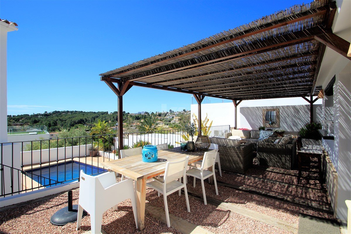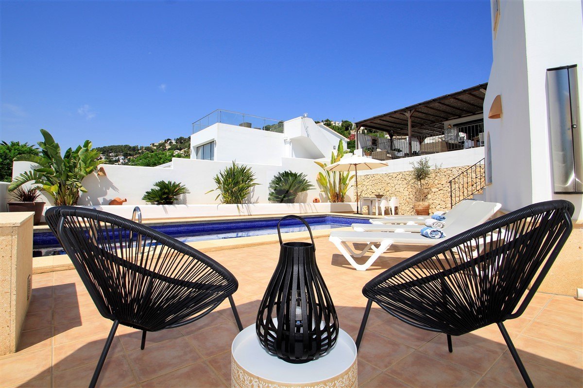 This lovely presented villa is distributed over two levels linked via internal stairs and is set on a large, 865 meters, level plot located in the popular area Pinar de L´Abogat at just a few minutes drive from all amenities as well as the town centre of Moraira with is sandy beaches alongside the Mediterranean sea.