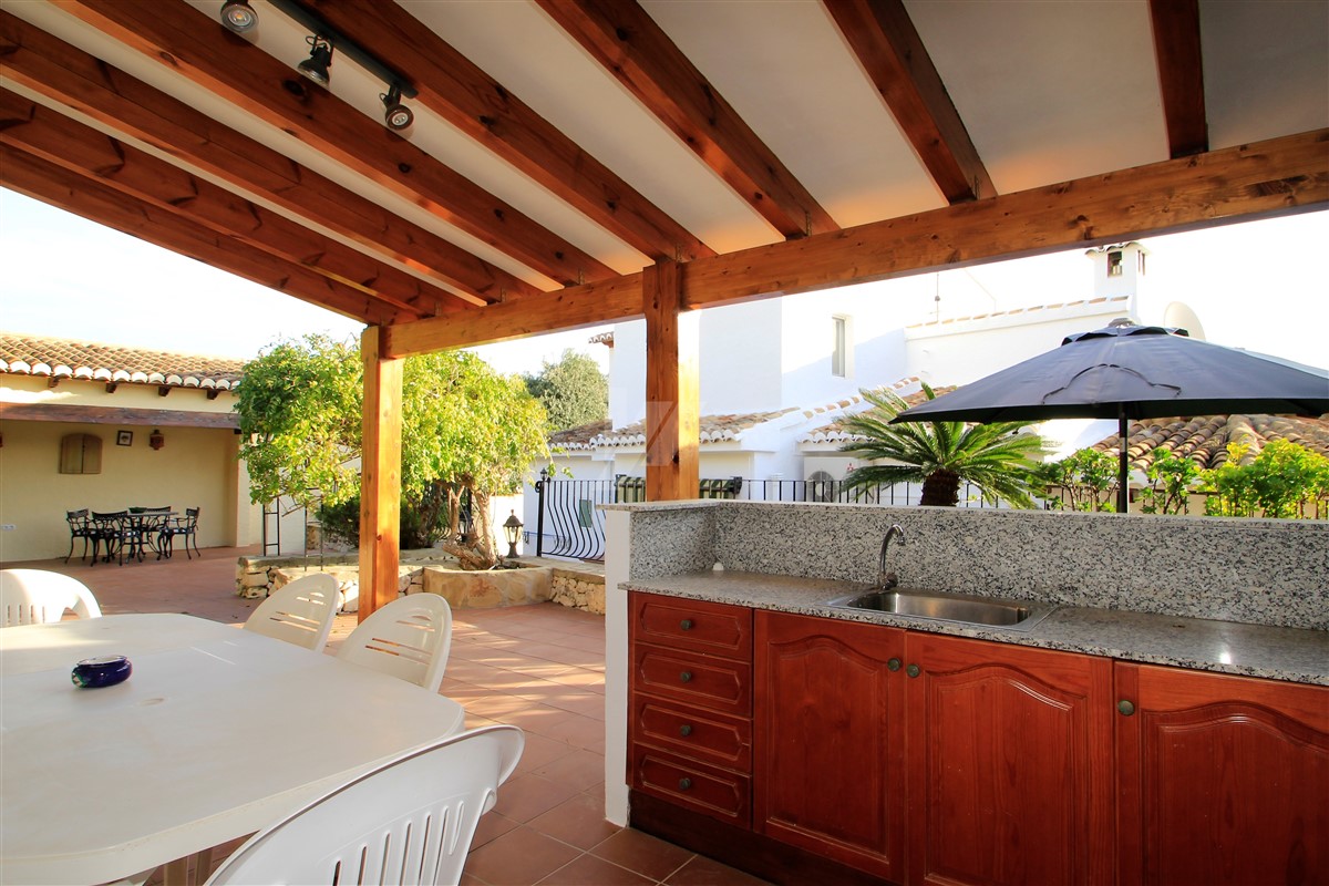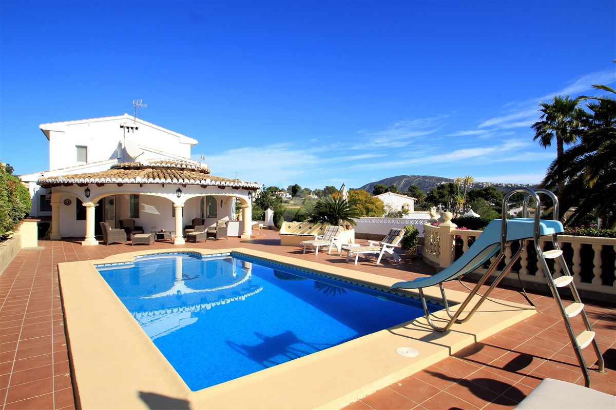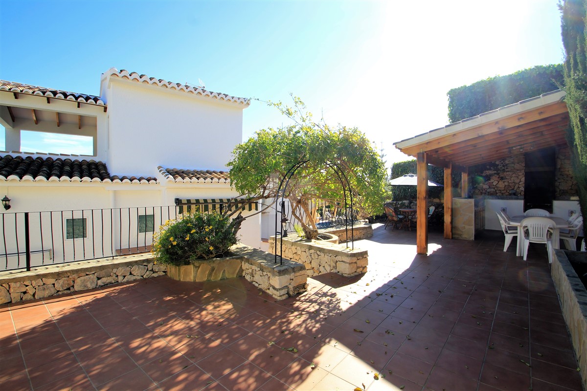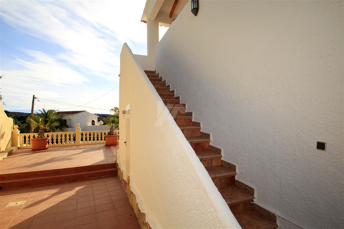 This lovely presented villa is distributed over three levels linked via external stairs and is set on a large, 763 square meters, plot located in a quiet cul-de-sac within the Benimeit area of Moraira at walking distance to all amenities and a short drive to the town centre of Moraira with its sandy beaches along the Mediterranean sea.